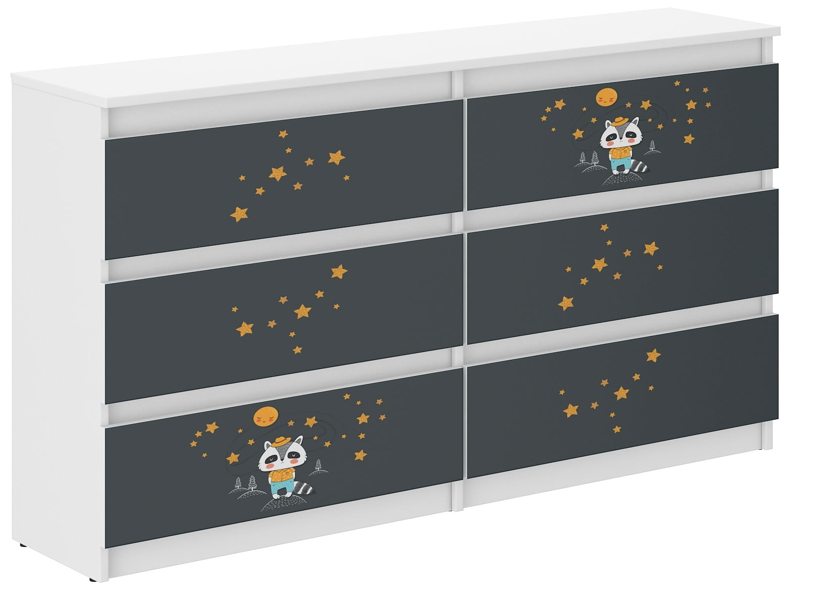 • 6 pakowne szuflady idealne na dziecięce ubranka lub drobne akcesoria.