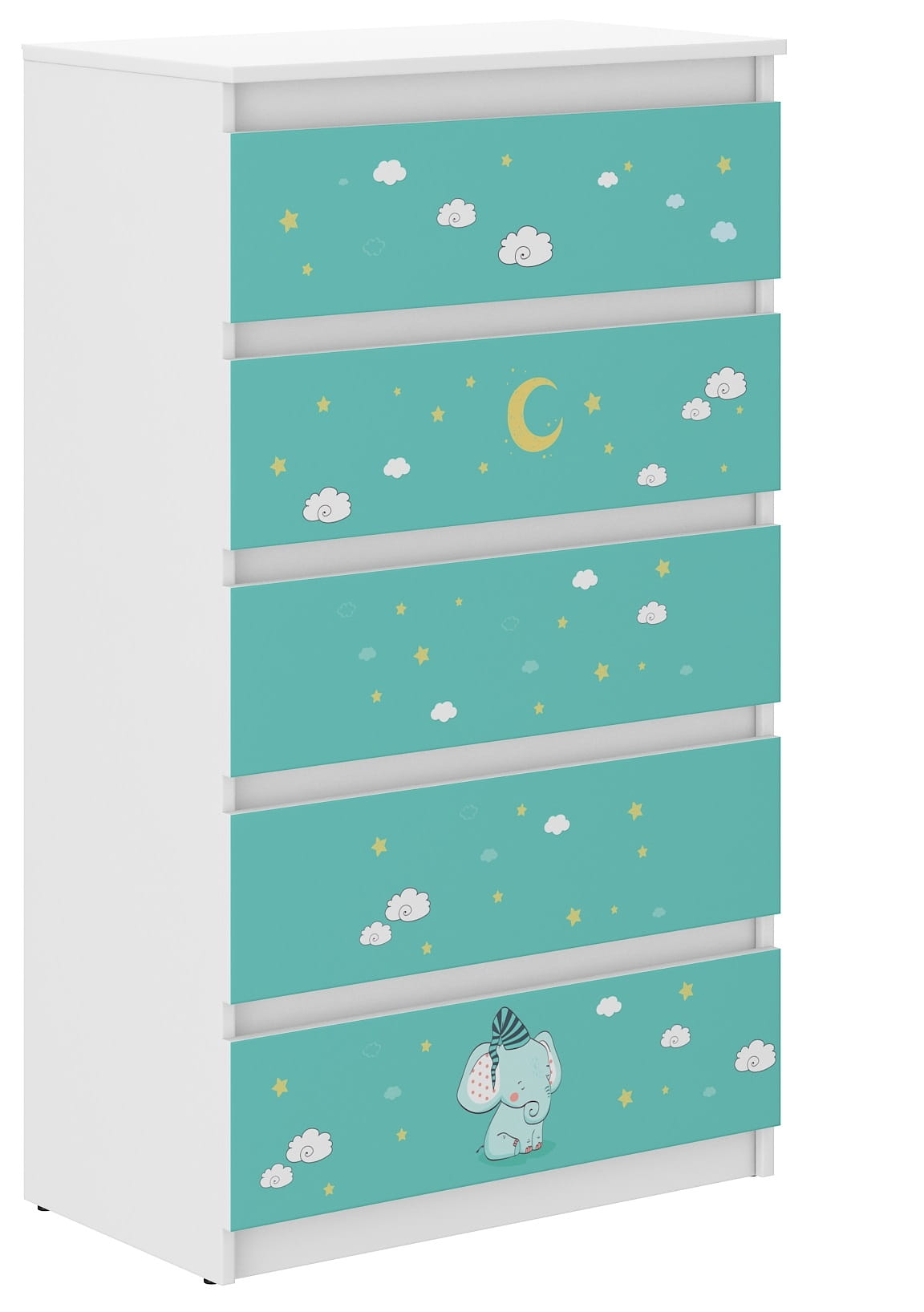 • 5 pakowne szuflady idealne na dziecięce ubranka lub drobne akcesoria.