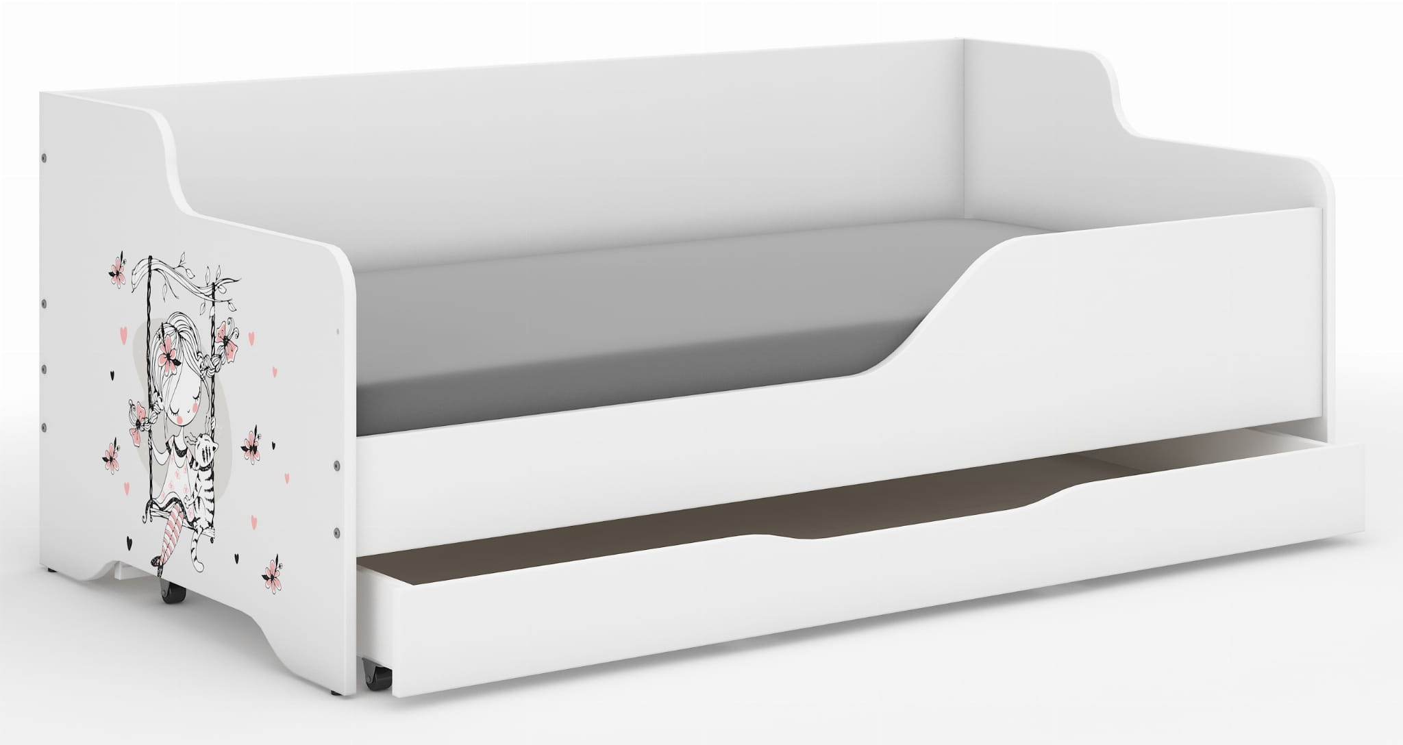 Łóżko dziecięce LILU 160x80 DZIEWCZYNKA NA HUŚTAWCE-boki