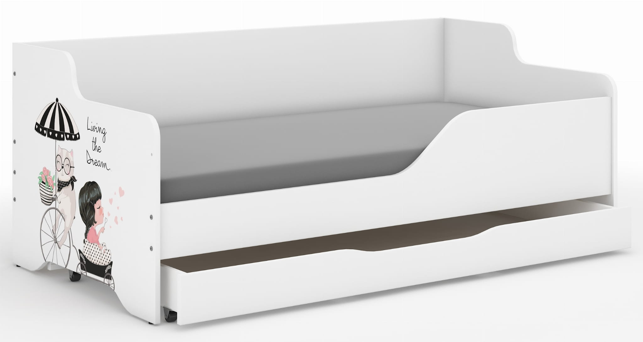 Łóżko dziecięce LILU 160x80 DZIEWCZYNKA NA WYCIECZCE-boki