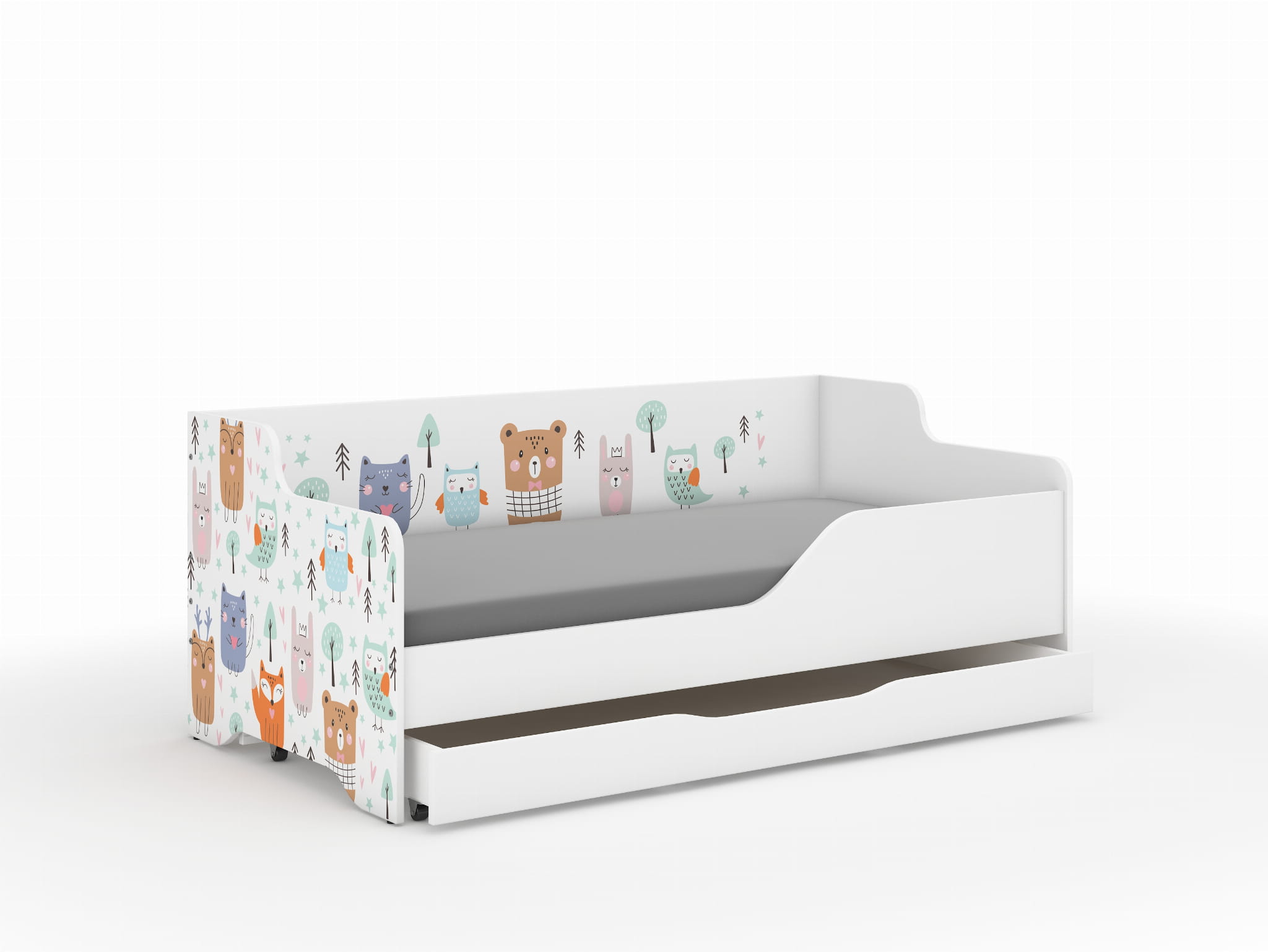 - Łóżko typu SOFA z profilowanym bokiem zapewniającym bezpieczeństwo użytkowania.