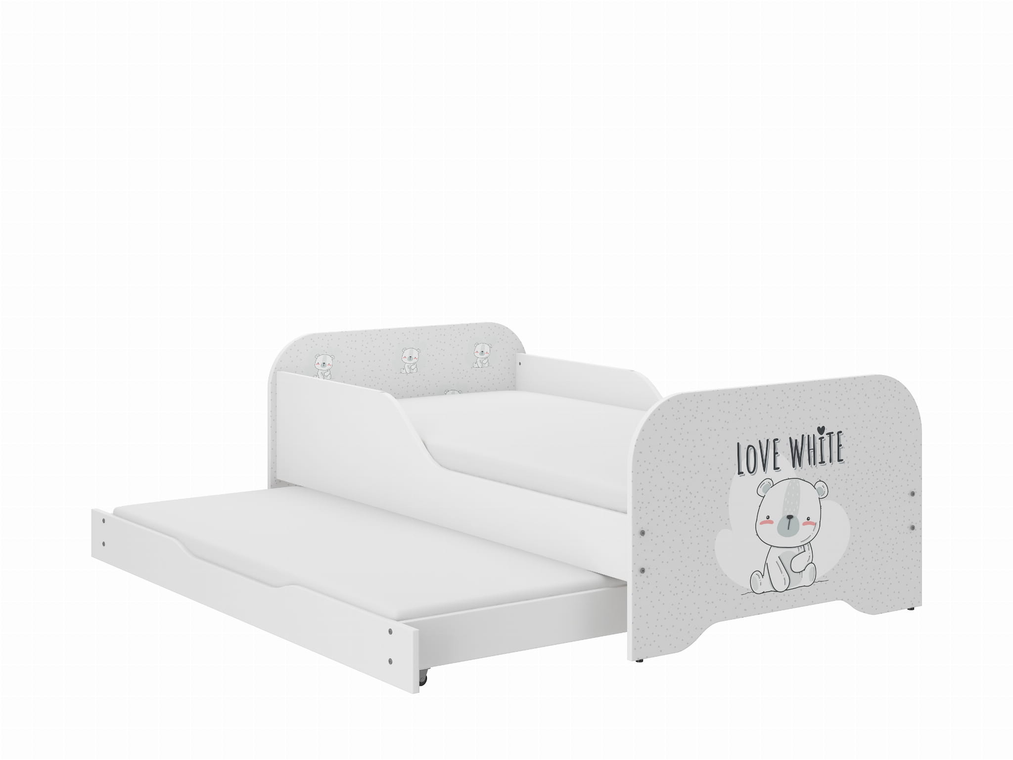 Łóżko dziecięce MIKI 160x80 BIAŁY MISIU z funkcją spania